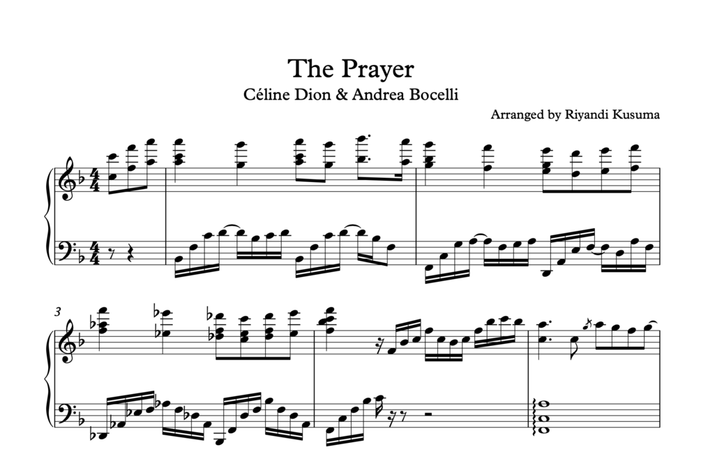 The Prayer - Céline Dion & Andrea Bocelli (Sheet Music)$5.99$5.99https://schema.org/InStockusdRiyandi KusumaRiyandi Kusuma5 ratingsI want this!Size74 KBLength5 pagesAdd to wishlist New wishlistShareShare on XShare on Facebook Copy linkCopy product URLRatings5(5 ratings)555 stars100%4 stars0%3 stars0%2 stars0%1 star0%